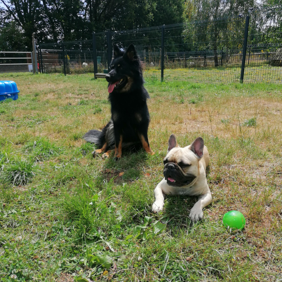 Et voici mes 2 associés qui m'assistent lors de mes cours : Pippin, bouledogue français fauve et Targa, berger de bohême. Il y a eu également Ganja, bouledogue français bringé. Il est décédé en 2022. C'était mon premier chien. J'ai également une nouvelle recrue : Vhagar, qui est la demi-sœur de Targa.